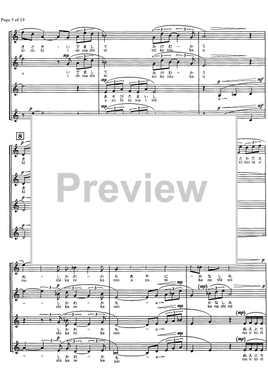 Digital Sheet Music for Kagiroi no Banka - Score by , Akira Nishimura scored for Female Chorus; id:337914
