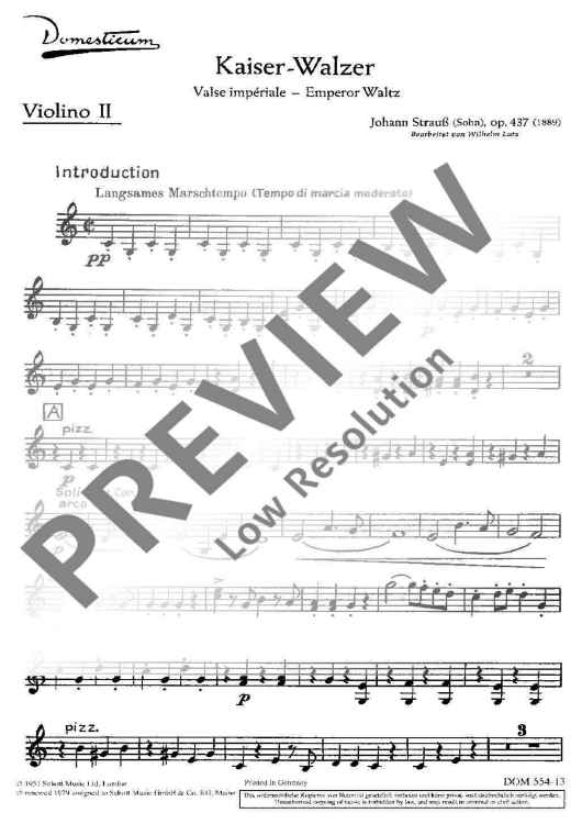 Digital Sheet Music for Kaiserwalzer - Violin II by Johann Strauß (Son) scored for Salon Orchestra; id:487980