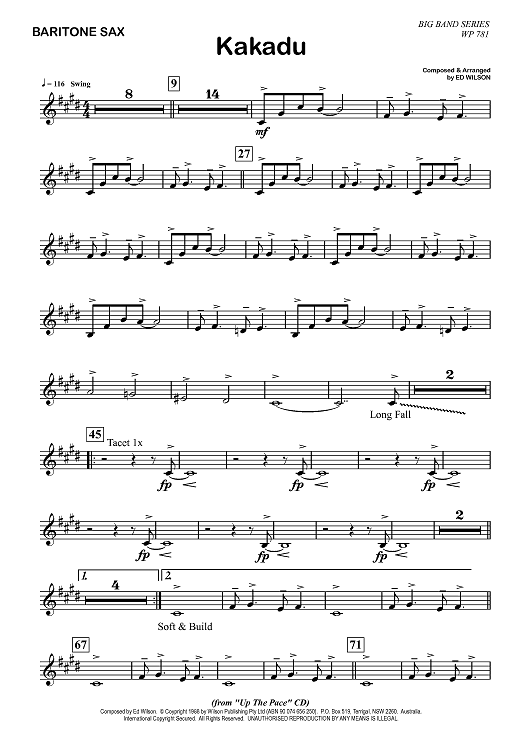Digital Sheet Music for Kakadu - Baritone Saxophone by Ed Wilson scored for Jazz Ensemble; id:362088