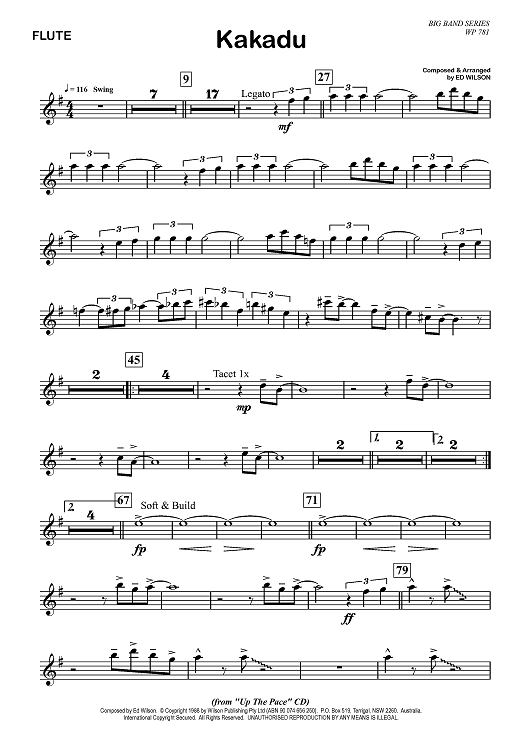 Digital Sheet Music for Kakadu - Flute by Ed Wilson scored for Jazz Ensemble; id:362103