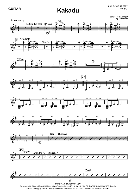 Digital Sheet Music for Kakadu - Guitar by Ed Wilson scored for Jazz Ensemble; id:362097