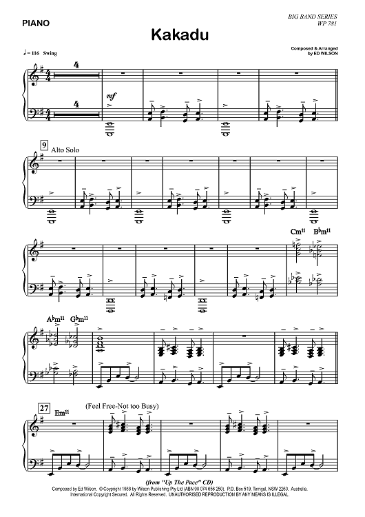 Digital Sheet Music for Kakadu - Piano by Ed Wilson scored for Jazz Ensemble; id:362098