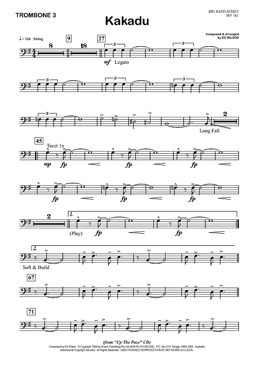 Digital Sheet Music for Kakadu - Trombone 3 by Ed Wilson scored for Jazz Ensemble; id:362095