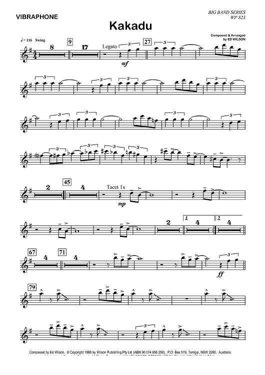 Digital Sheet Music for Kakadu - Vibraphone by Ed Wilson scored for Jazz Ensemble; id:357256