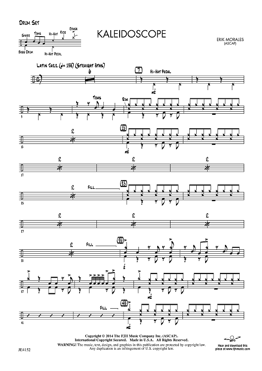 Digital Sheet Music for Kaleidoscope - Drum Set by Erik Morales scored for Jazz Ensemble; id:446587
