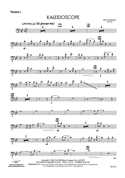 Digital Sheet Music for Kaleidoscope - Trombone 1 by Erik Morales scored for Jazz Ensemble; id:446579