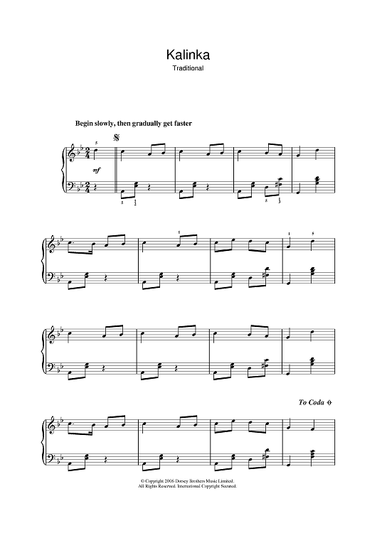 Digital Sheet Music for Kalinka by scored for Piano/Vocal/Chords; id:401863