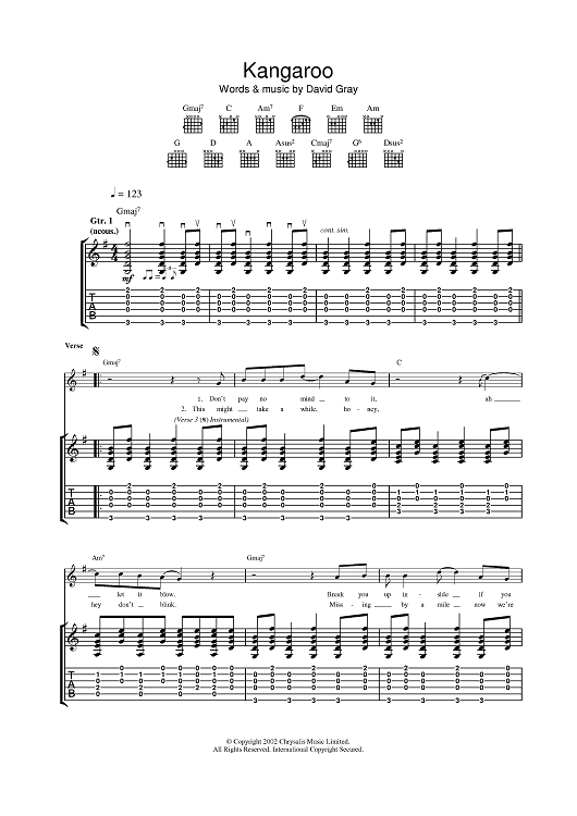 Digital Sheet Music for Kangaroo by David Gray scored for Guitar Tab; id:377776