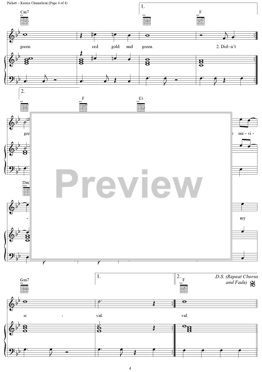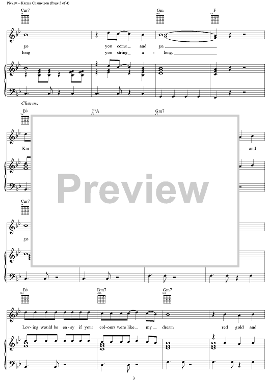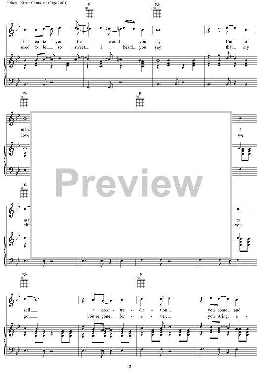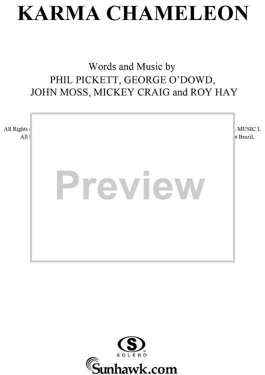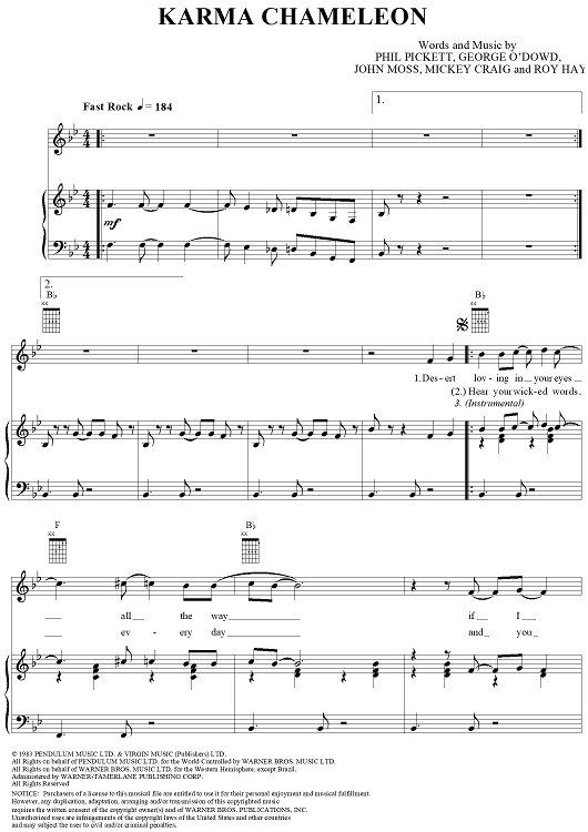 Digital Sheet Music for Karma Chameleon by Roy Hay, John Moss, Mikey Craig, Phil Pickett, George O'Dowd scored for Piano/Vocal/Chords; id:254504
