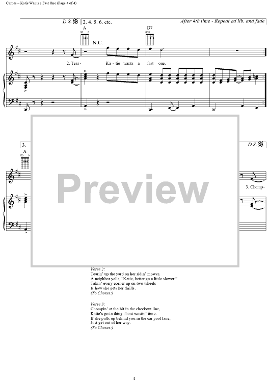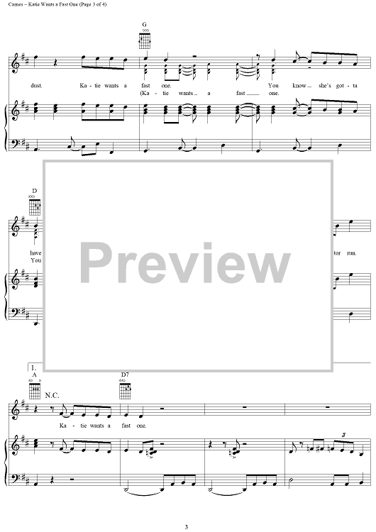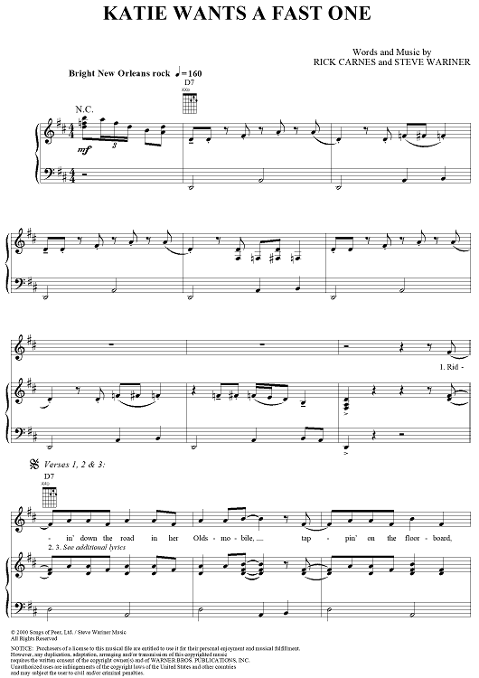 Digital Sheet Music for Katie Wants a Fast One by Steve Wariner, Garth Brooks, Rick Carnes scored for Piano/Vocal/Chords; id:286257