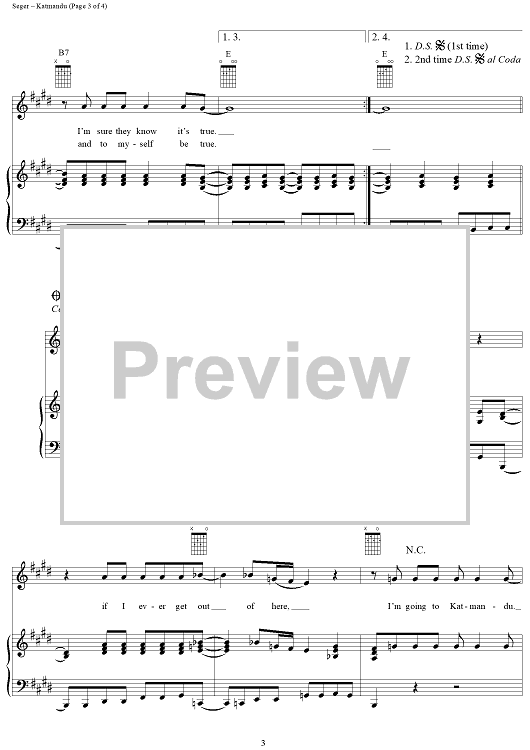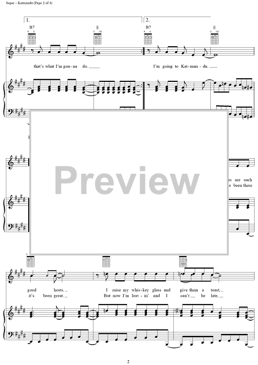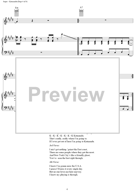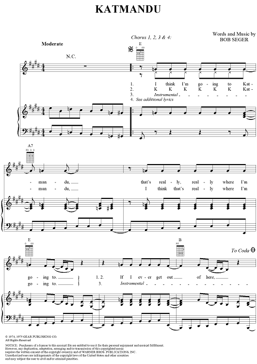 Digital Sheet Music for Katmandu by Bob Seger scored for Piano/Vocal/Chords; id:219363