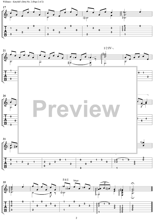 Digital Sheet Music for Katydid's Ditty No. 2 by Mason Williams scored for Guitar Tab; id:304369