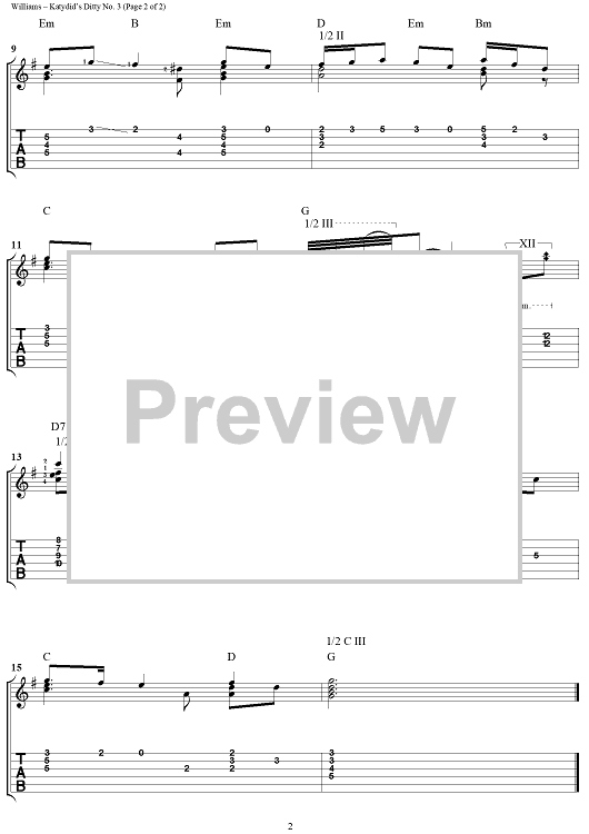 Digital Sheet Music for Katydid's Ditty No. 3 by Mason Williams scored for Guitar Tab; id:304371
