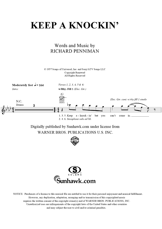 Digital Sheet Music for Keep A Knockin' by Little Richard scored for Lead Sheet; id:234615
