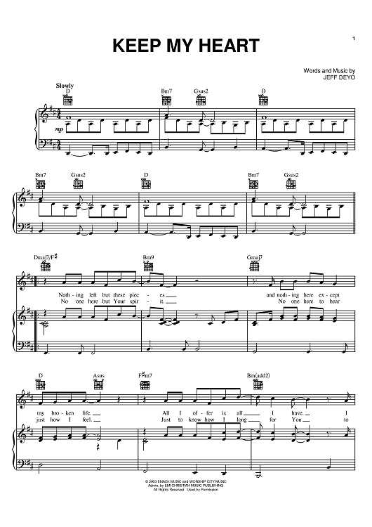 "Keep My Heart" Sheet Music by Jeff Deyo