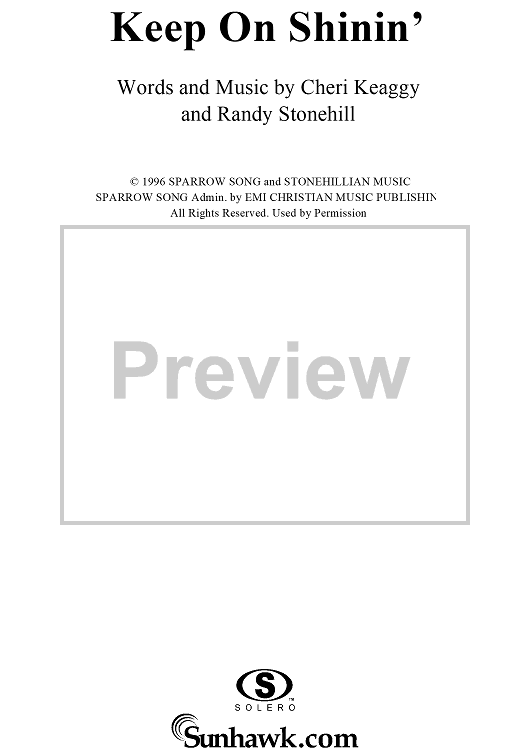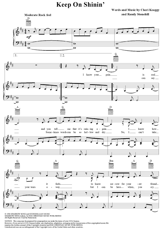 Digital Sheet Music for Keep On Shinin' by Cheri Keaggy, Randy Stonehill scored for Piano/Vocal/Chords; id:249805