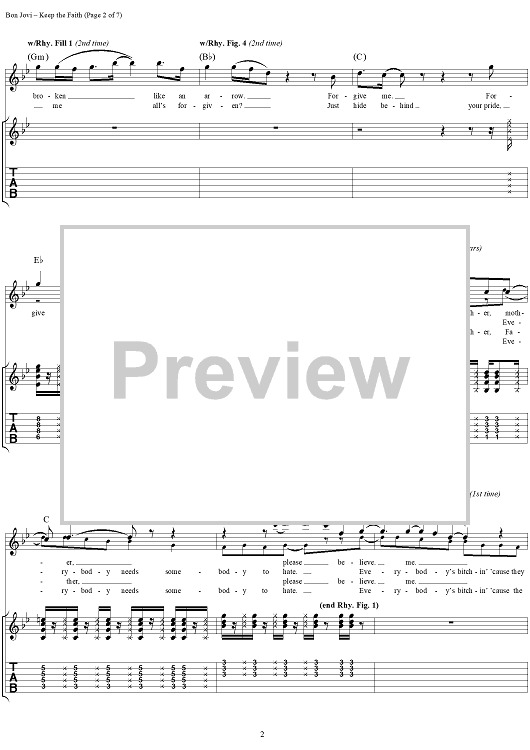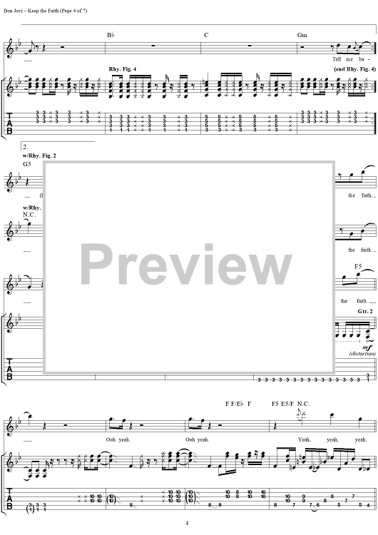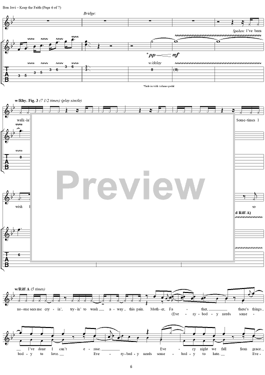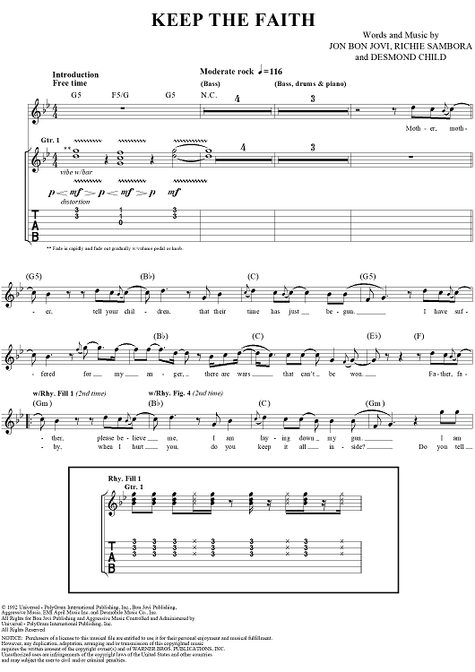 "Keep the Faith" Sheet Music by Jon Bon Jovi
