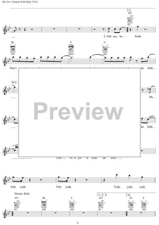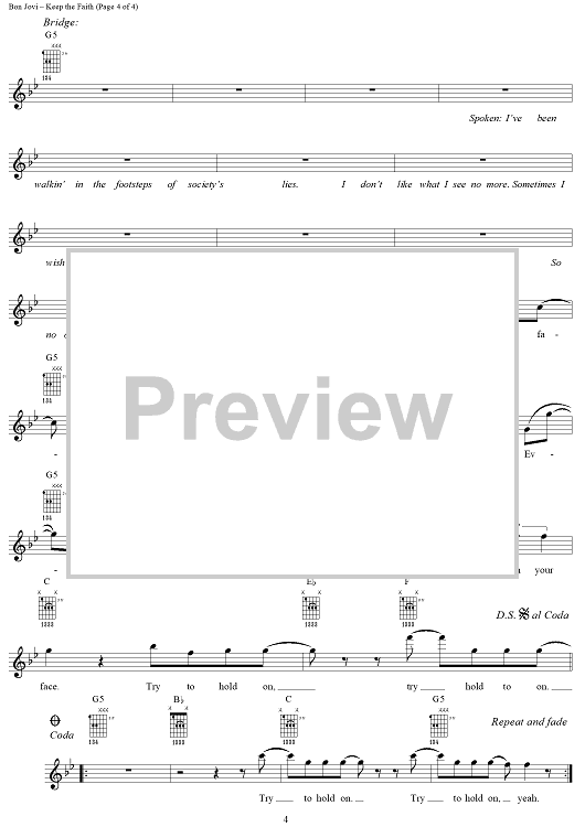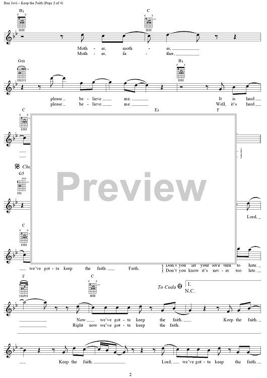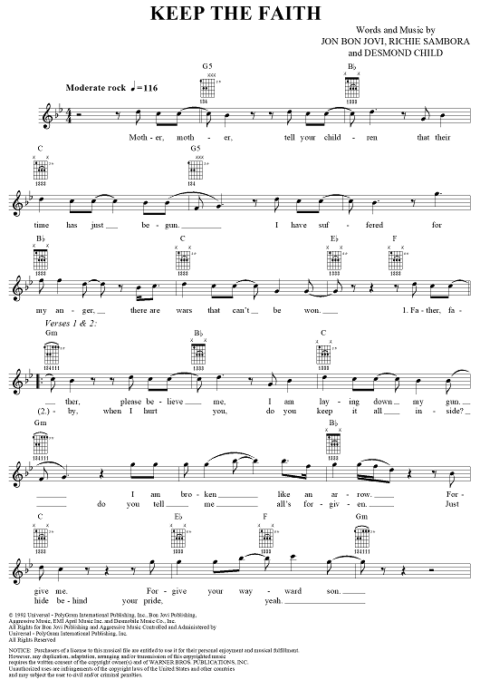 "Keep the Faith" Sheet Music by Jon Bon Jovi