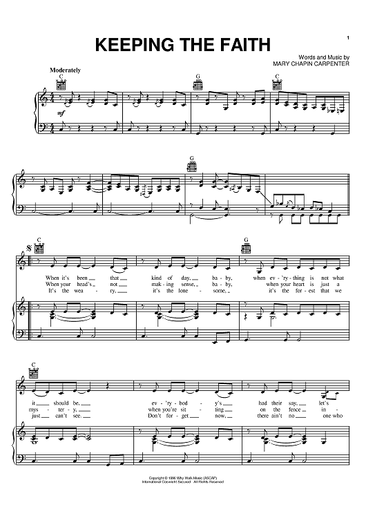 Digital Sheet Music for Keeping The Faith by Mary Chapin Carpenter scored for Piano/Vocal/Chords; id:395969