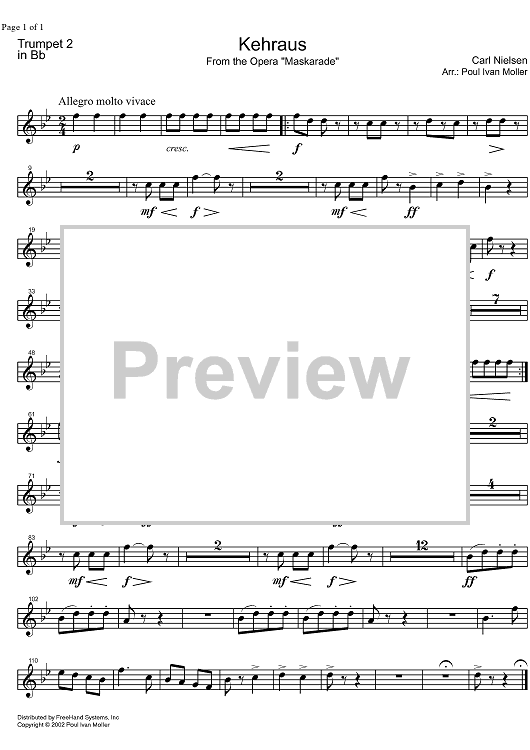 Digital Sheet Music for Kehraus - Trumpet 2 by , Poul Ivan Moller, Carl Nielsen scored for Concert Band; id:332078