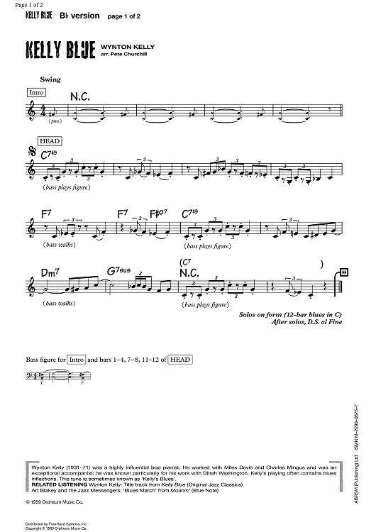"Kelly Blue" Sheet Music by Wynton Kelly