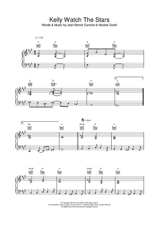 Digital Sheet Music for Kelly Watch The Stars by Air, Jean-Benoit Dunckel, Nicolas Godin scored for Piano/Vocal/Chords; id:380109