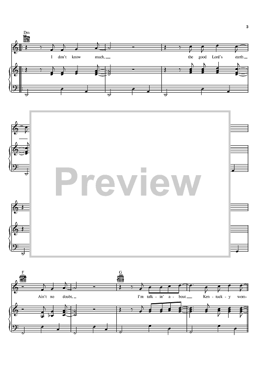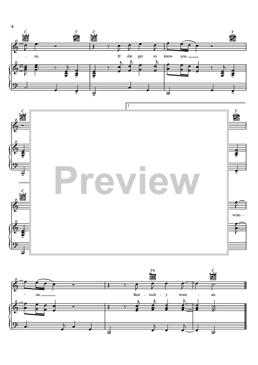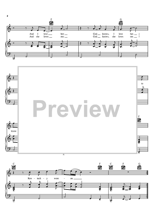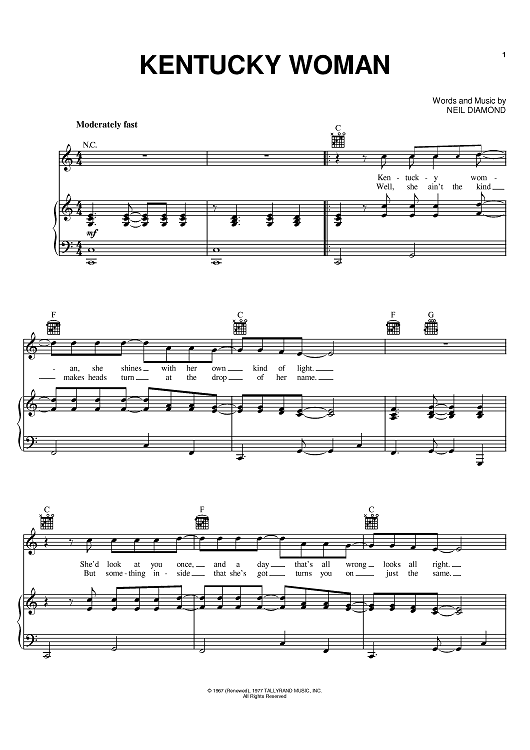 Digital Sheet Music for Kentucky Woman by Neil Diamond scored for Piano/Vocal/Chords; id:371329