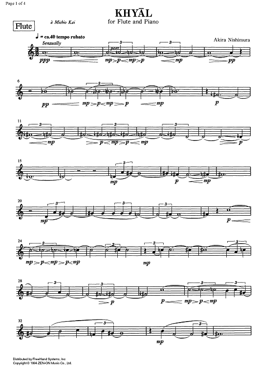 Digital Sheet Music for Khyal - Flute by Akira Nishimura scored for Flute/Piano; id:337891