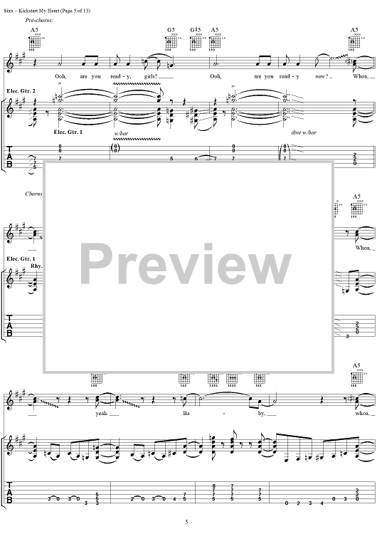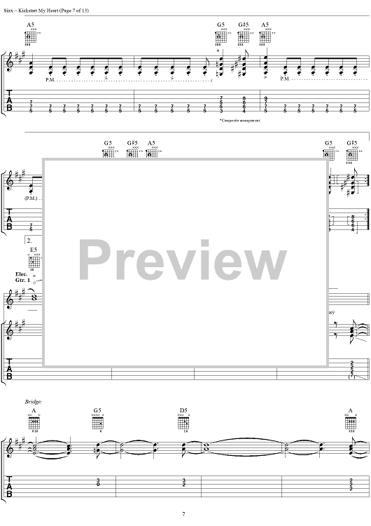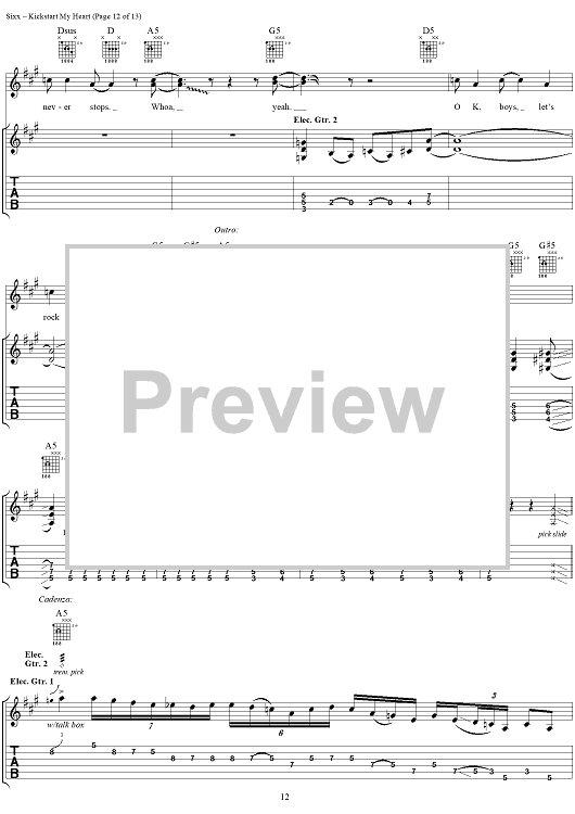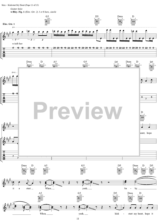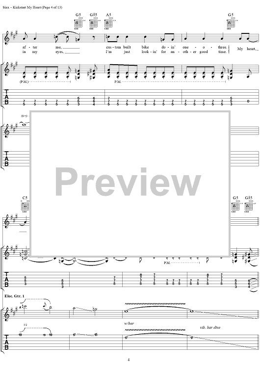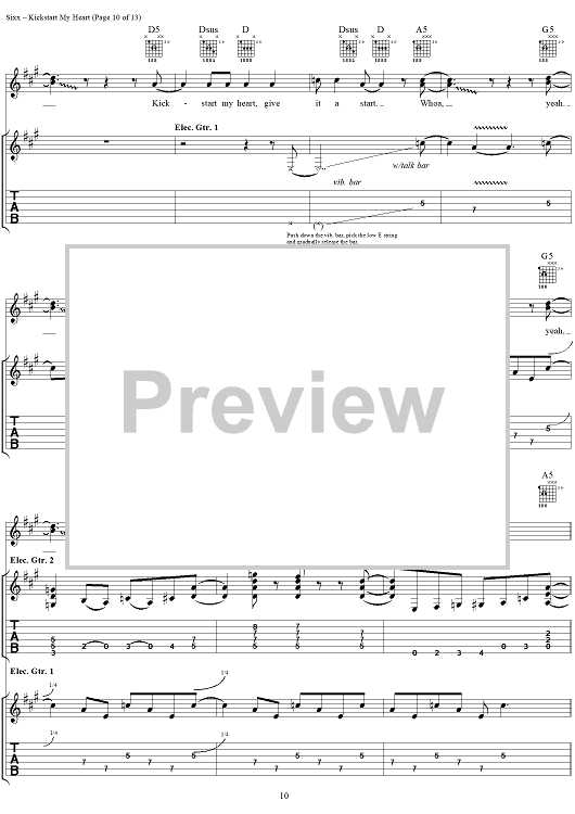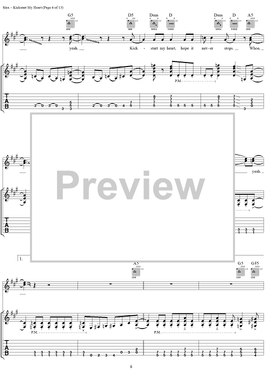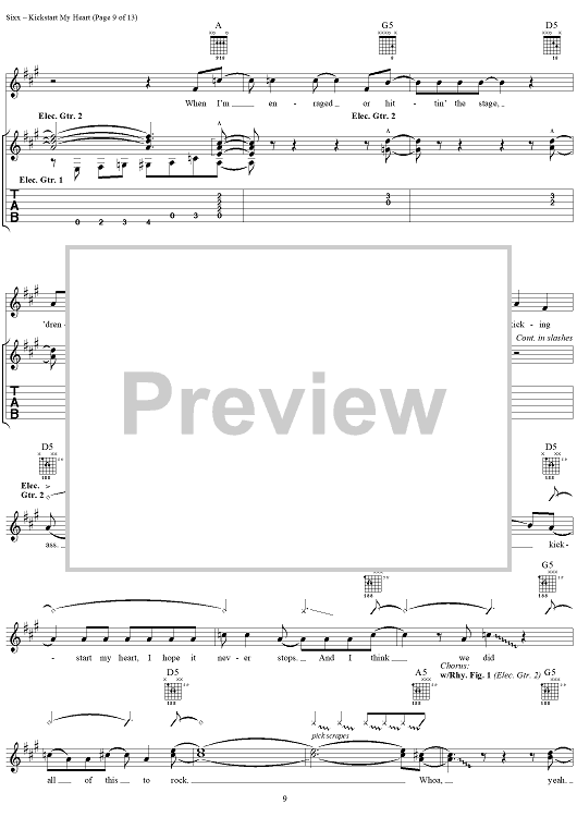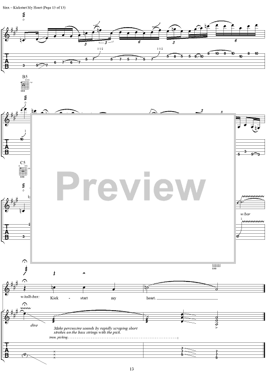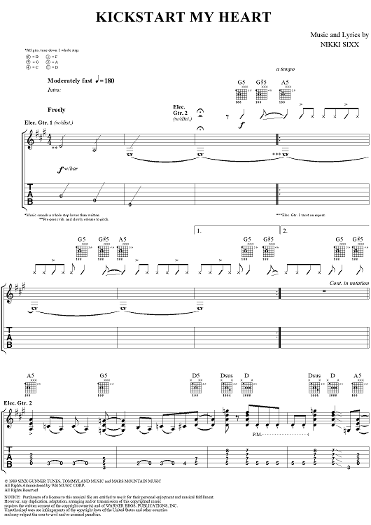 Digital Sheet Music for Kickstart My Heart by Mötley Crüe, Nikki Sixx scored for Guitar Tab/Vocal; id:297753