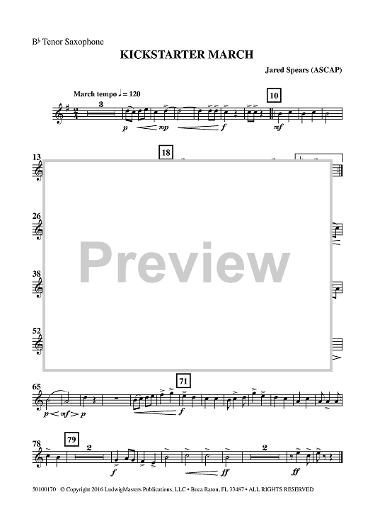 "Kickstarter March - Bb Tenor Sax" Sheet Music by Jared Spears