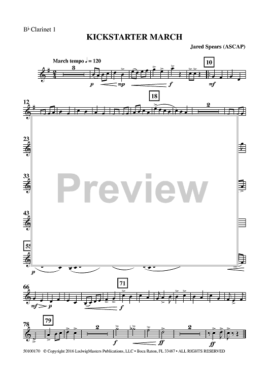 "Kickstarter March - Clarinet 1 in Bb" Sheet Music by Jared Spears