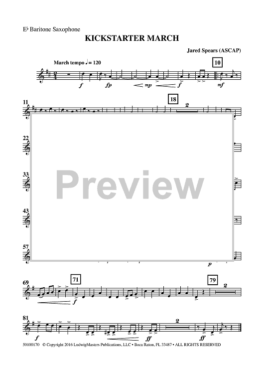 "Kickstarter March - Eb Baritone Sax" Sheet Music by Jared Spears