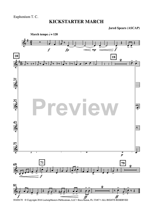 "Kickstarter March - Euphonium TC" Sheet Music by Jared Spears