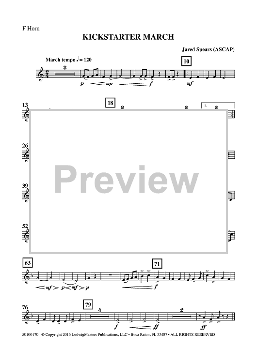 "Kickstarter March - Horn in F" Sheet Music by Jared Spears