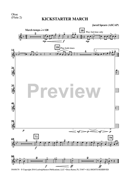 Digital Sheet Music for Kickstarter March - Oboe (Flute 2) by , Jared Spears scored for Concert Band; id:461381