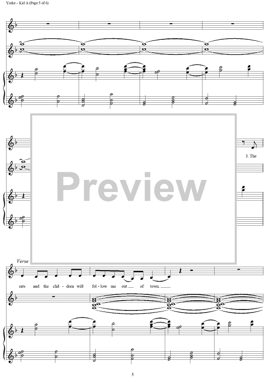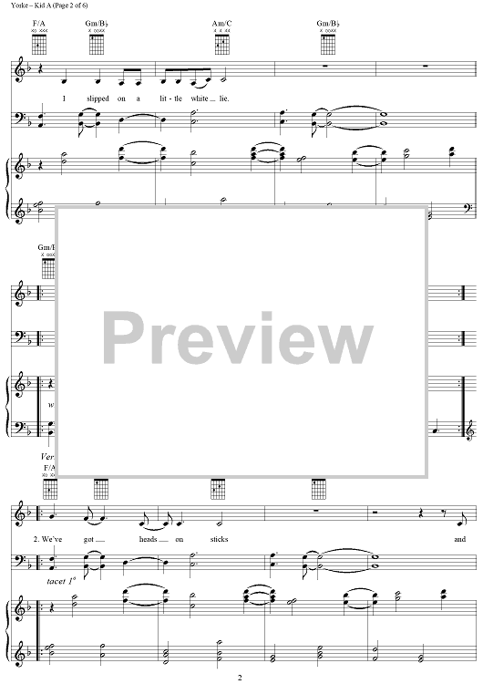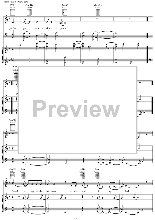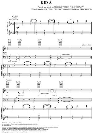 Digital Sheet Music for Kid A by Thomas Yorke, Jonathan Greenwood, Philip Selway, Coz, Edward O'Brien, Radiohead scored for Piano/Vocal/Chords; id:286632