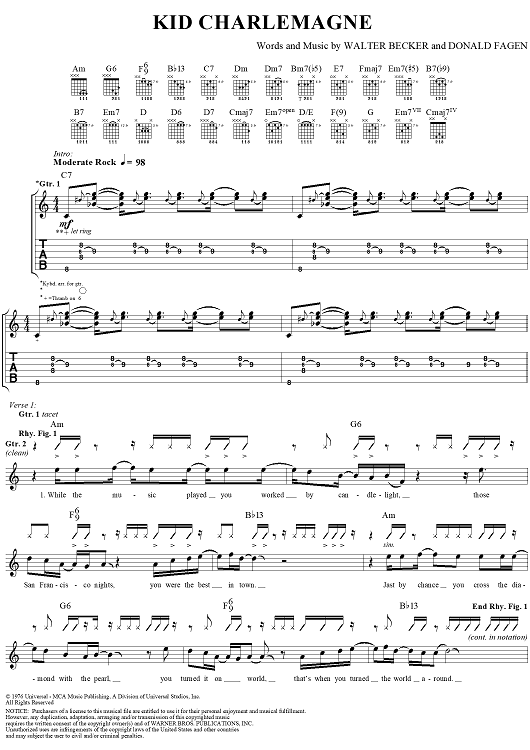 "Kid Charlemagne" Sheet Music by Steely Dan