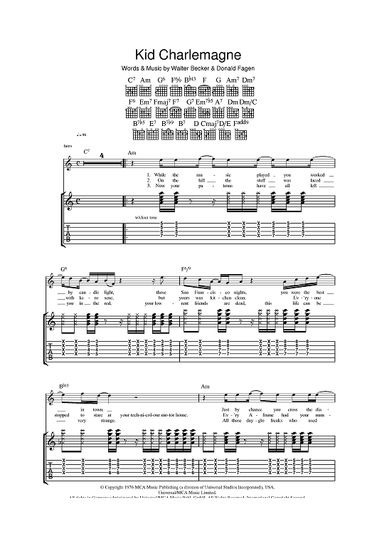 Digital Sheet Music for Kid Charlemagne by Steely Dan, Donald Fagen, Walter Becker scored for Guitar Tab; id:396221