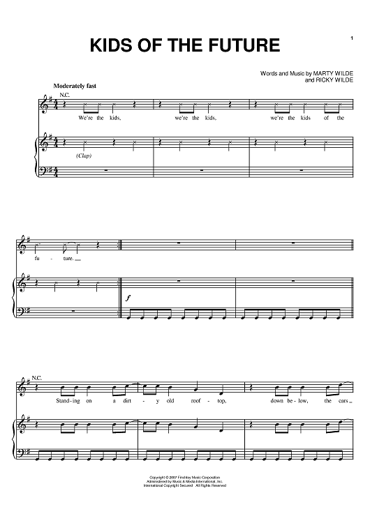 Digital Sheet Music for Kids Of The Future by Jonas Brothers, Marty Wilde, Ricky Wilde scored for Piano/Vocal/Chords; id:397538