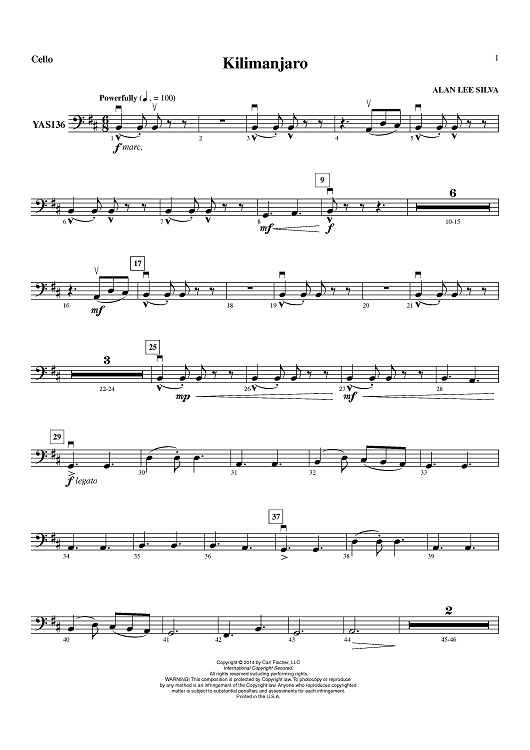 "Kilimanjaro - Cello" Sheet Music by Alan Lee Silva