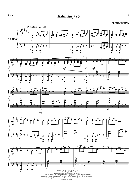 "Kilimanjaro - Piano" Sheet Music by Alan Lee Silva