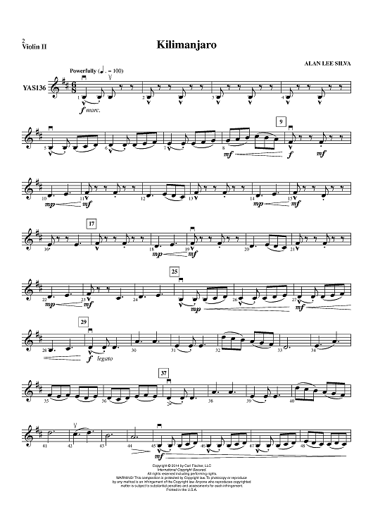 Digital Sheet Music for Kilimanjaro - Violin 2 by Alan Lee Silva scored for String Orchestra; id:449994