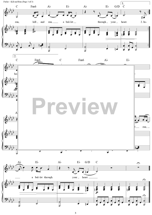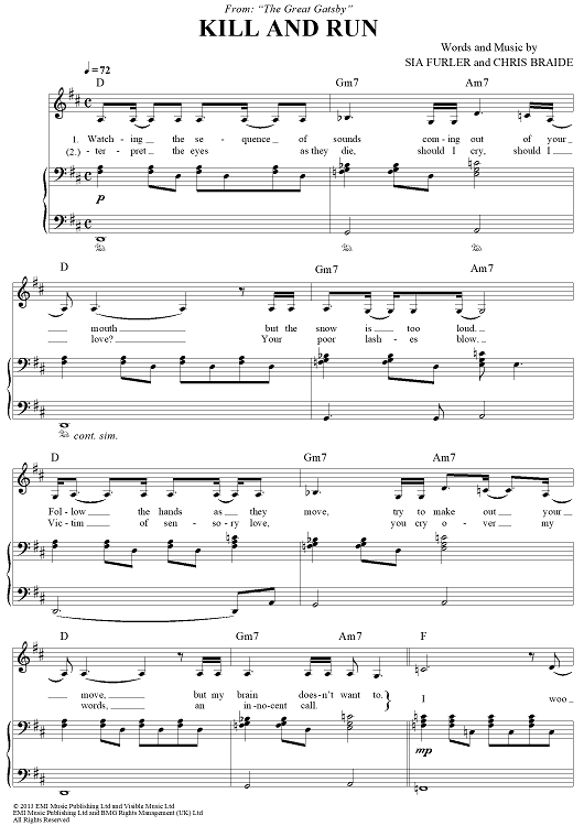 Digital Sheet Music for Kill and Run by Sia Furler, Sia, Chris Braide scored for Piano/Vocal/Chords; id:436723