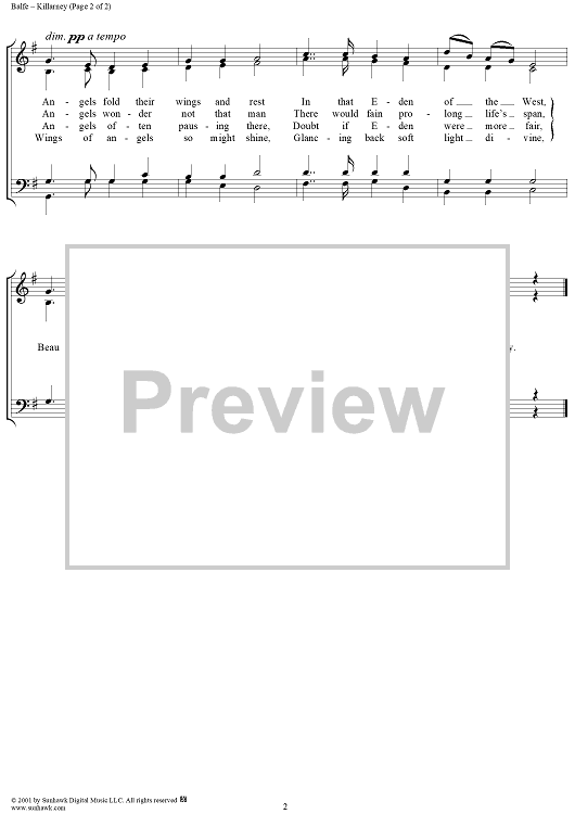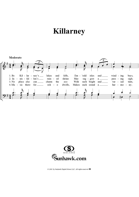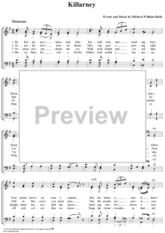 Digital Sheet Music for Killarney by Michael William Balfe scored for Four-part Mixed Chorus; id:250583