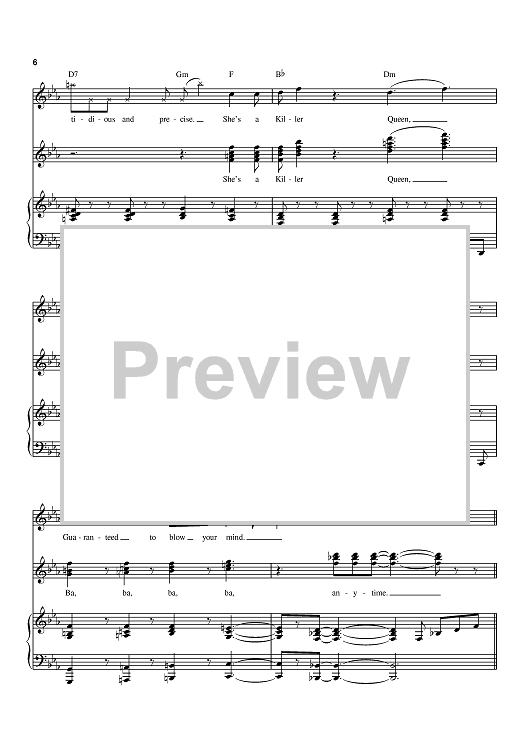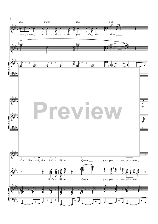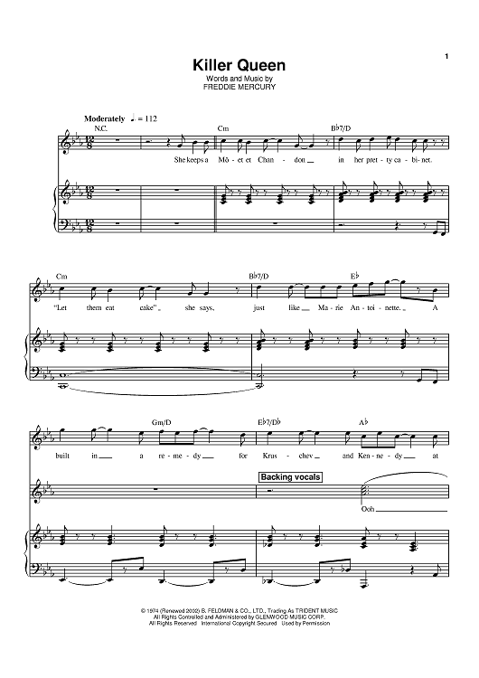 Digital Sheet Music for Killer Queen by Queen, Freddie Mercury scored for Piano/Vocal/Chords; id:368724