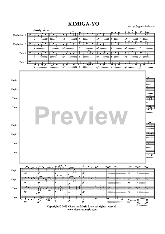Digital Sheet Music for Kimiga-Yo - Score by Eugene Anderson scored for Tuba Quartet; id:319231