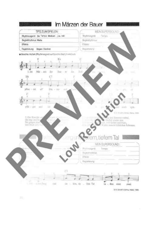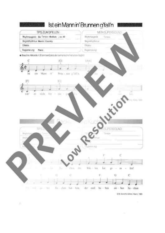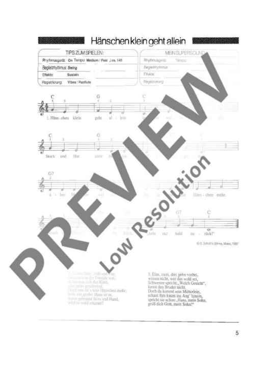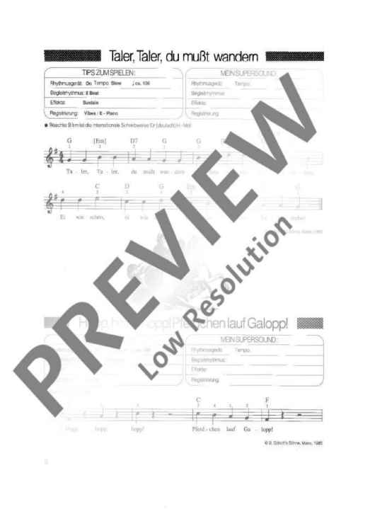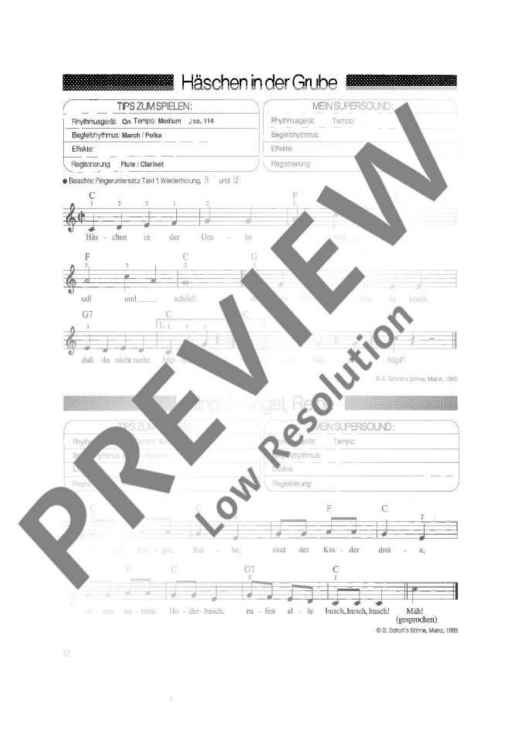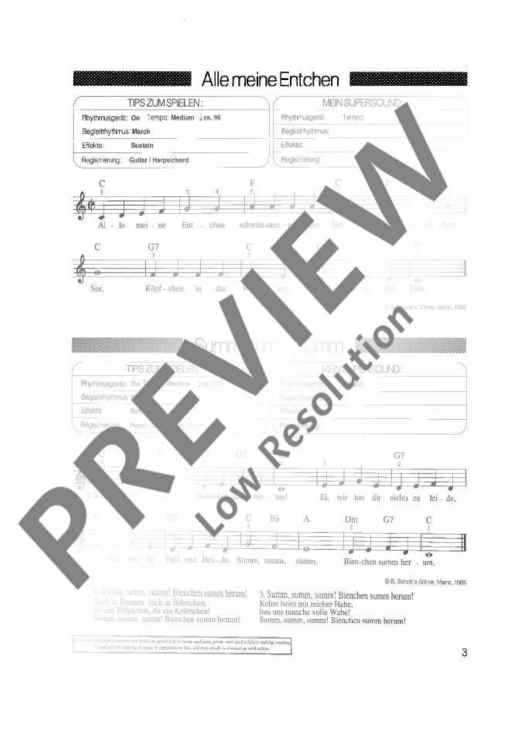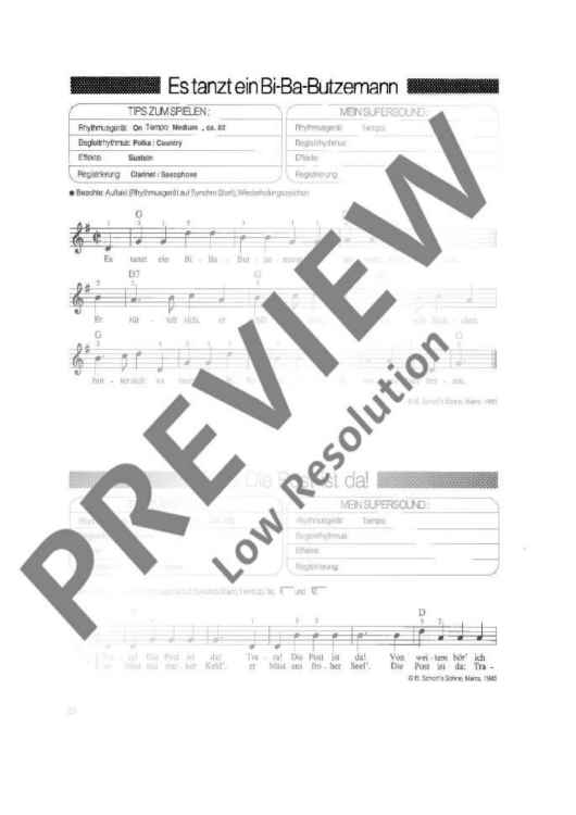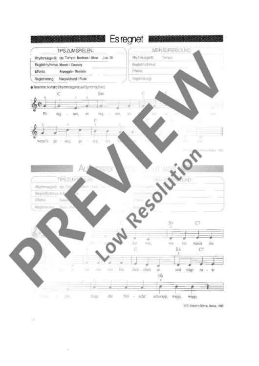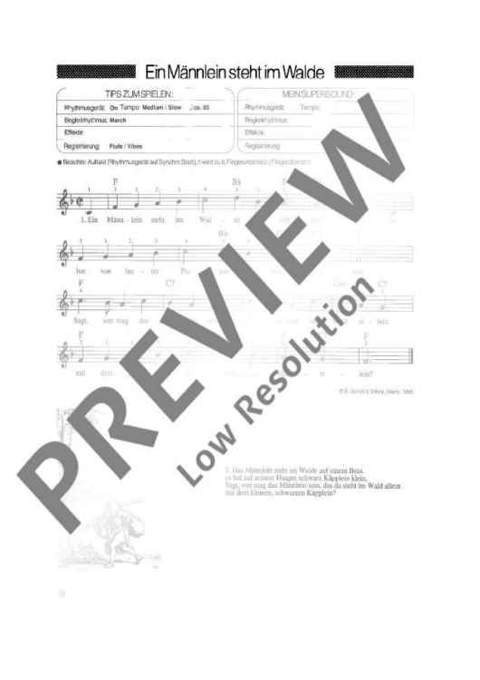 Keine Frage! Zu einem modernen, komfortabel ausgestatteten Keyboard gehören auch zeitgemäße, ansprechende Notenausgaben. Diese Serie ist für die Keyboards der neuen Generation maßgeschneidert, die die leicht spielbaren Arrangements im Supersound erklingen lassen. Die Ausstattung der Hefte dürfte alle Erwartungen eines Keyboarders erfüllen. Sie finden: Vorschläge zur Registrierung, zum Tempo, zur Begleitautomatik, zum Einsatz von Effekten, leicht spielbare Fingersätze, Hinweise zur Ausführung jedes Stückes und je eine Tabelle, in die Sie Ihre persönlichen Gestaltungsideen eintragen können. Die doppelseitige Einlage: zeigt Ihnen alle Griffe für den Einsatz der Einfinger-Akkord-Automatik, gibt Ihnen grundlegende Informationen über die Möglichkeiten Ihres Instruments, enthält speziell auf das Keyboard zugeschnittene "Tipps zum Üben", mit deren Hilfe Sie jedes dieser Stücke vorführreif spielen lernen und erklärt und übersetzt im "Mini-Lexikon" mehr als 60 Begriffe aus der Fachsprache des Keyboarders.