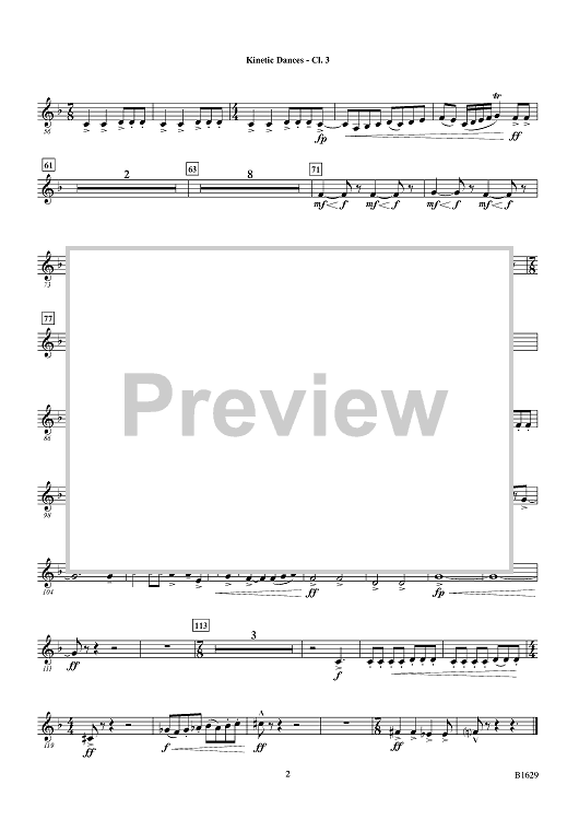 Digital Sheet Music for Kinetic Dances - Bb Clarinet 3 by Randall D. Standridge scored for Concert Band; id:454836
