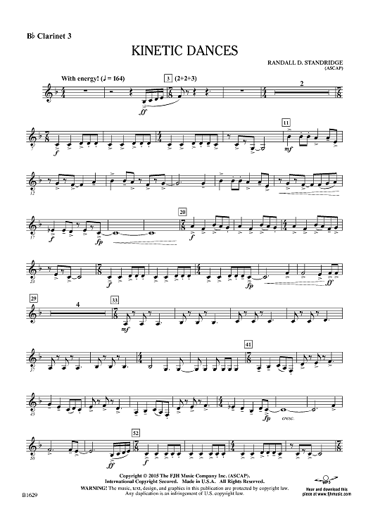 "Kinetic Dances - Bb Clarinet 3" Sheet Music by Randall D. Standridge