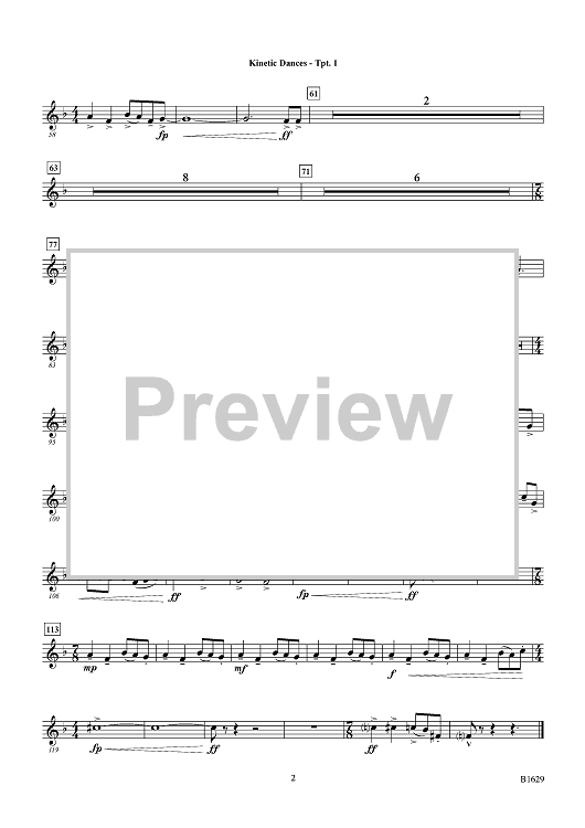 Digital Sheet Music for Kinetic Dances - Bb Trumpet 1 by Randall D. Standridge scored for Concert Band; id:454842